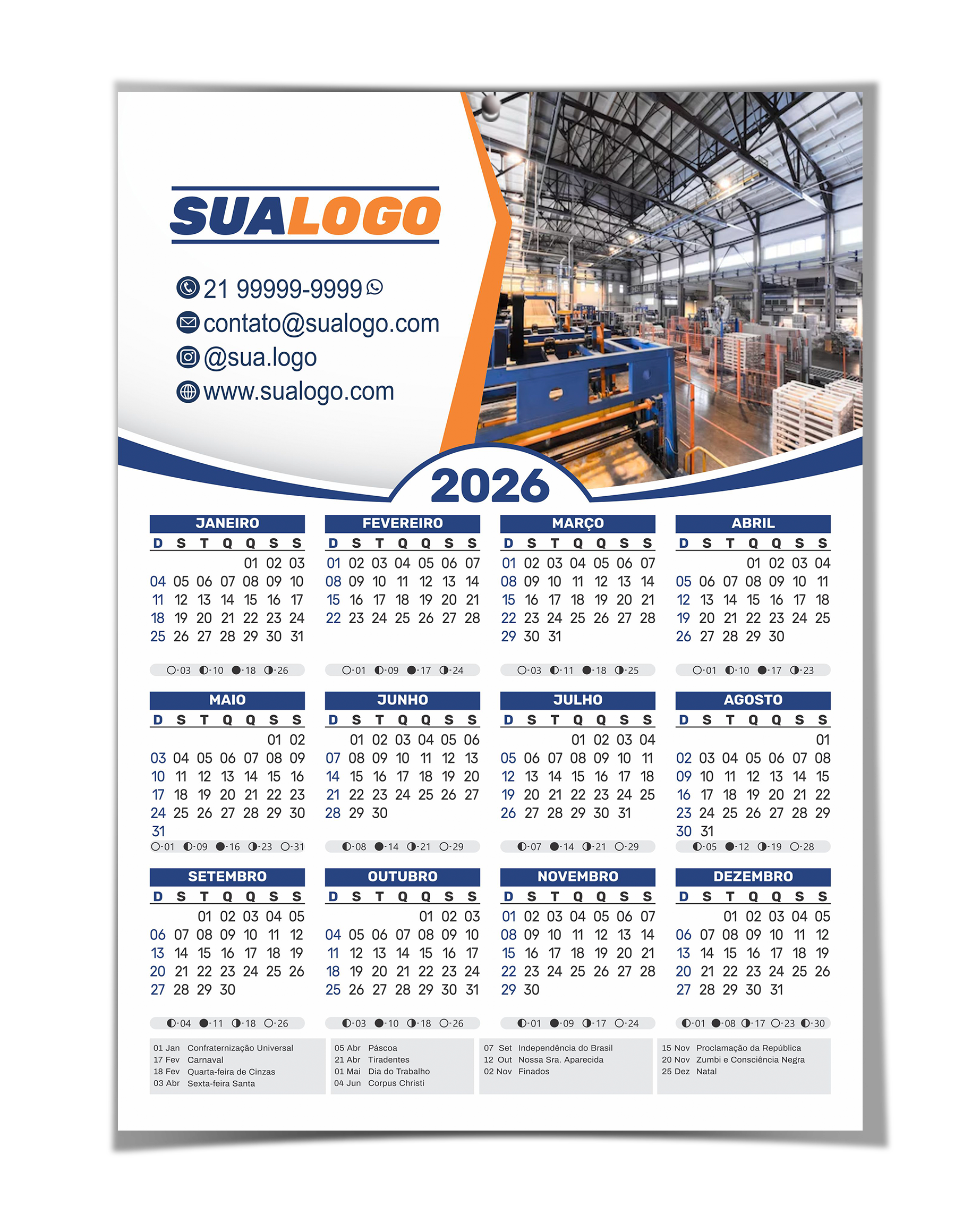 Calendário de Parede 2026 (31X46CM) Personalizado